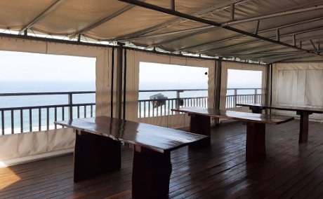 The viewing deck overlooks the Indian Ocean and has been weather-proofed for chilly and windy days.