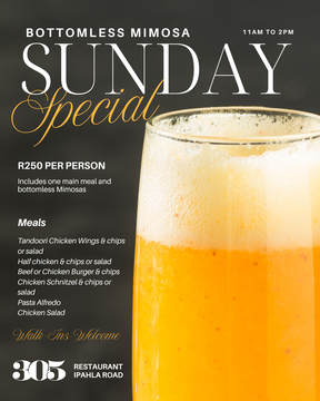 Events must be booked in advance, so reach out to us via WhatsApp 084 317 0982 or email dine@305.africa to request our event documents and secure your date.