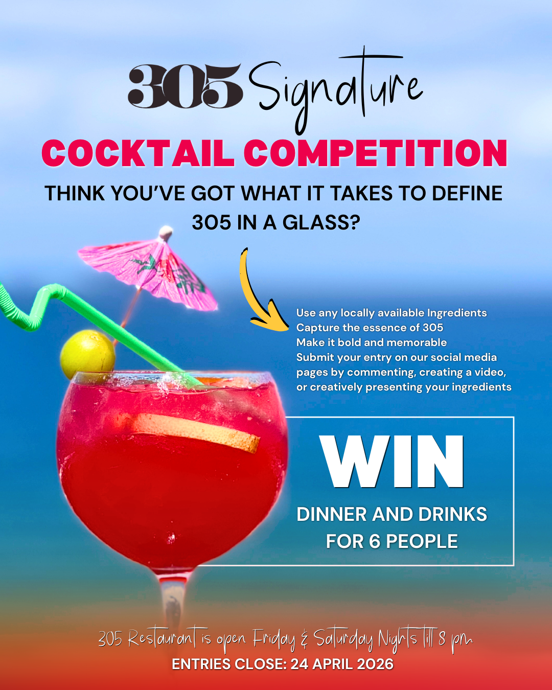 305 RESTAURANT WILL BE CLOSED FOR PRIVATE FUNCTIONS: 9 May 2026 (Floral and Fabulous Mother's Day experience)