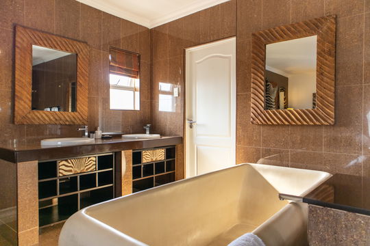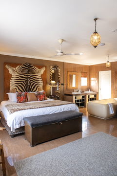 Our Africa room boasts authentic animal skins & a beautiful walk-in shower & stone bath. Private entrance & luxurious King size bed.